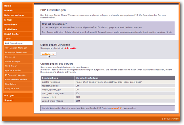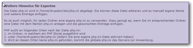 Ganz unten auf der Seite gibts noch Tipps zur Bearbeitung der php.ini, die detailierte Beschreibung dazu gibts auf den folgnden Seiten.