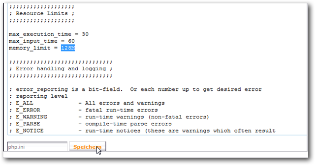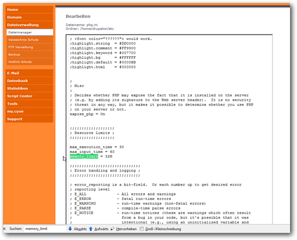 In der nun im Online-Editor sucht man nach dem Term memory-limit (CTRL+f / Strg+f).