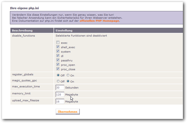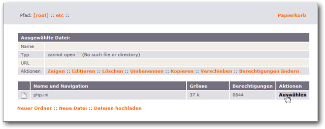 Man wählt die php.ini an indem man auf Auswählen klickt.