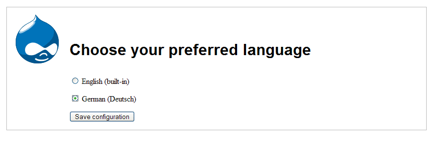 Anschließend wird die bevorzugte Sprache der Drupal-Installation eingestellt: