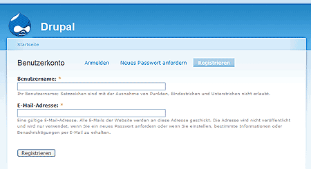 Drupal ist nun unter der Basis-URL zu erreichen. Abschließend sollte der erste User, der auch gleichzeitig alle administrativen Rechte im System hat, angelegt zu werden.