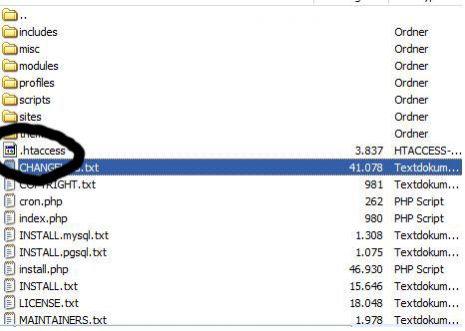 Achtung! Im Hauptverzeichnis von Drupal muss sich eine .htaccess Datei befinden. Sollte keine zu sehen. Muss überprüft werden, dass der FTP-Client versteckte Dateien anzeigt.