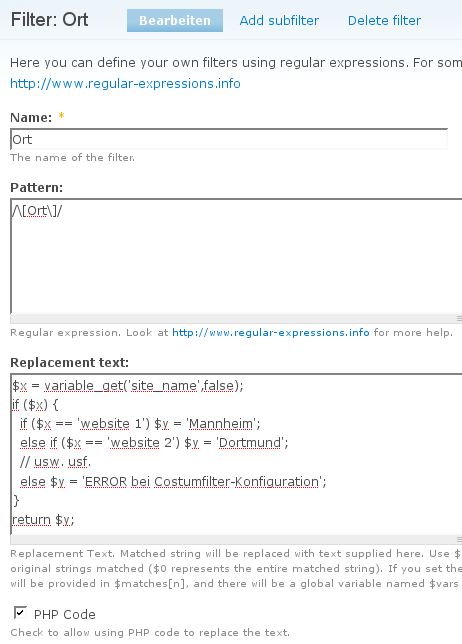 Klasse, das funktioniert super. Einziger Wehrmuttropfen - ich muss bei den betroffenen Inhaltstypen doch das Eingabeformat auf PHP umstellen. Sonst wird der Ersetzungtext nicht dynamisch auf den verschiedenen Domains ausgewechselt, sondern bleibt immer auf dem der Erstellungs-Domain stehen.