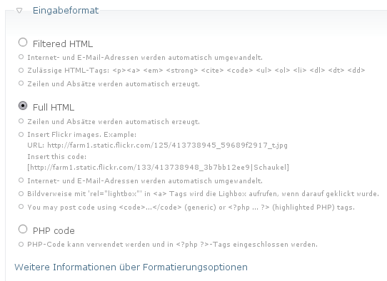 Einziger Wehrmuttropfen - ich muss bei den betroffenen Inhaltstypen doch das Eingabeformat auf PHP umstellen