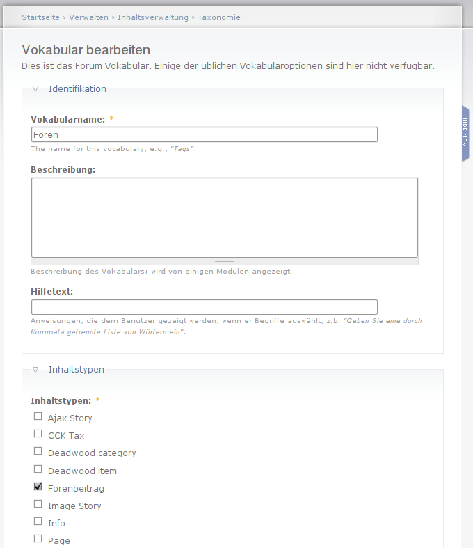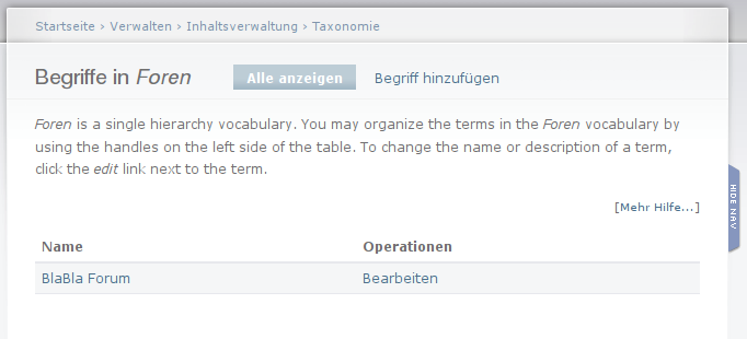 Komme einfach Heute Abend in den DVC. Da geht es um Taxonomie. Ich denke dabei wird sich Dein Forum-Problem loesen.