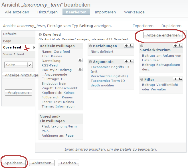 Sehe Dir bitte den View an. Gibt es dort eine Feed-Anzeige (die an eine andere Anzeige angehangen ist)?