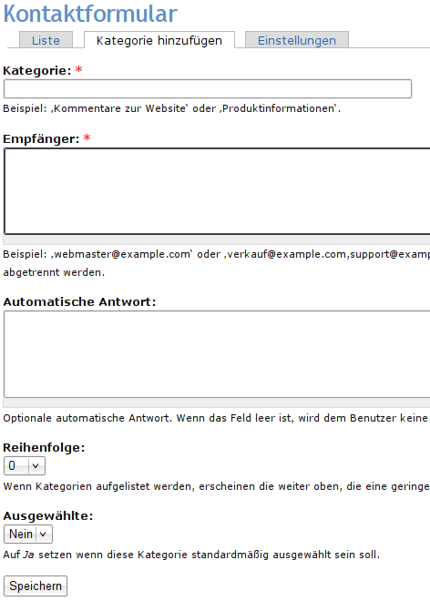 Wenn ich das Kontaktformular aufrufe, kann ich unter der Überschrift "Kategorie:" eine Empfängerliste auswählen.