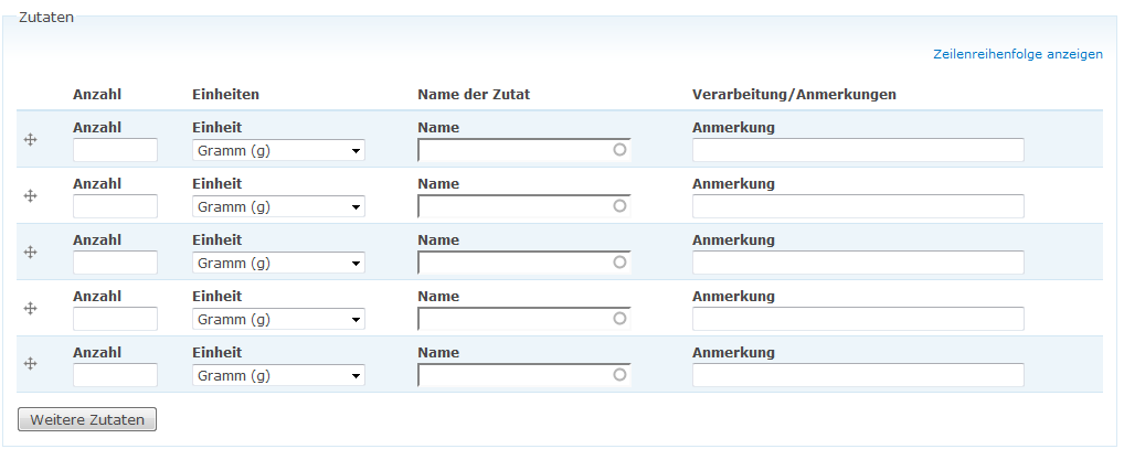 Für die einzelnen Zeilen benötigst Du meiner Meinung nach das Modul [do:field_collection Field Collection]. Um das ganze aber mit der Verwaltung der Zutaten zu verknüpfen wirst Du um ein eigenes Modul wohl nicht herum kommen.