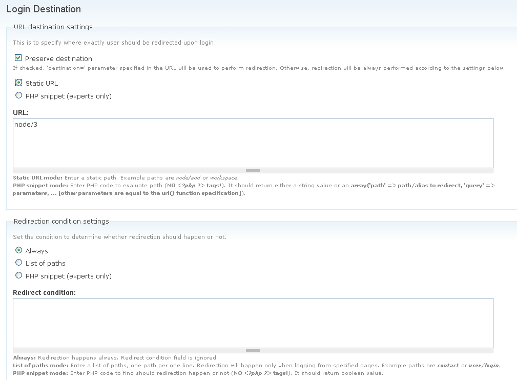 bei mir funktioniert es. Nach der Anmeldung wird dann auf dem gewünschten Node umgeleitet.
