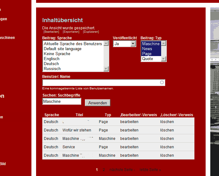 Das Suchmodul funktioniert zusammen mit Views, damit wird es möglich Suchinterfaces zu bauen die besser wie das normale sind und alle Konfigurationsmöglichkeiten von Views haben - Damit zB die möglichkeit die Anzahl der Ergbnisse einzustellen wie man an diesem View sieht der für Editoren der Seite erstellt wurde: