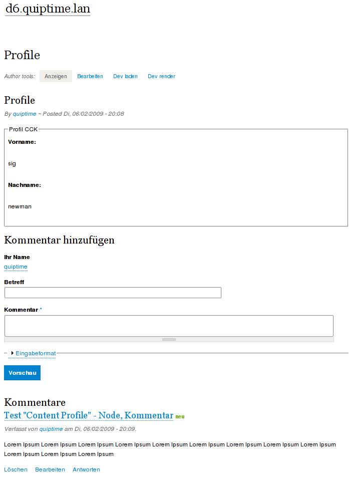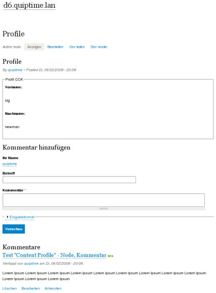 Geht es um ein Problem mit Kommentform oder mit "Content Profile" oder mit beiden im Zusammenhang?