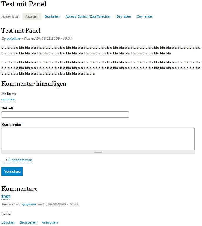 Mit Panels 3 das Kommentarformular unter einer Node anzeigen ...