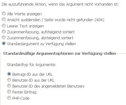 - Die auszuführende Aktion, wenn das Argument nicht vorhanden ist: Standardargument zur Verfügung stellen. Standardtyp für Argument: Beitrags-ID aus der URL