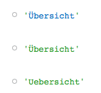 Ausgabe: Bspw.Linkübersicht - Umlaut/e werden nicht ersetzt.