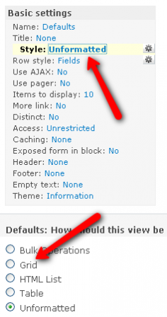 Ich habe versucht das mit Views zu lösen, komme da leider auch nicht weiter. Es scheitert schon das ich den Output-Style Grid nicht finde