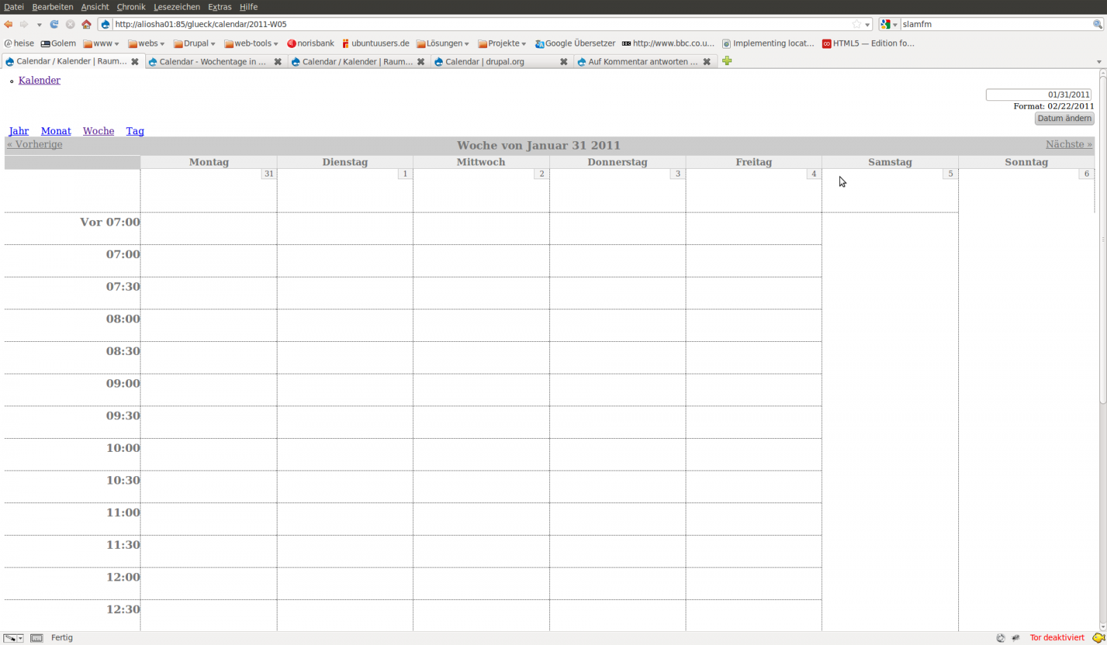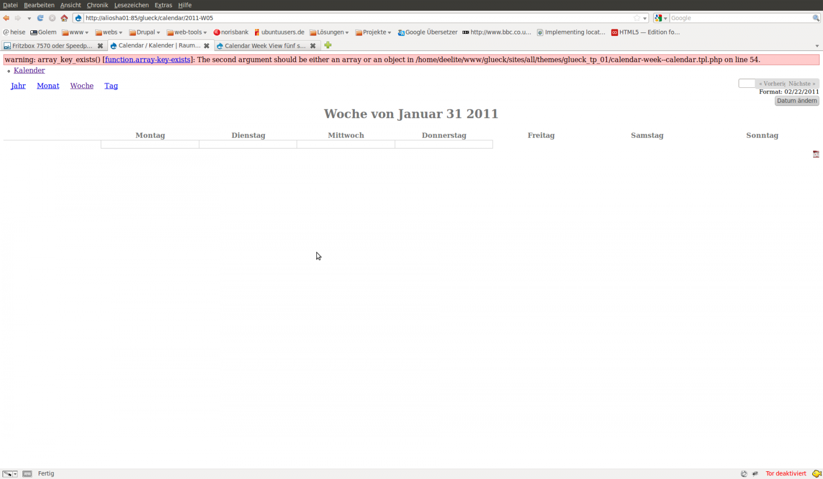 Parse error: syntax error, unexpected $end in /home/deelite/www/glueck/sites/all/themes/glueck_tp_01/calendar-week--calendar.tpl.php on line 82Sorry mein Fehler, Zeile 66-73. Habs allerdings nicht getestet und der Code betrifft auch nur die ausgabe der einzelnen Tage. Bei den Wochentagsnamen musst du das selbe auch noch machen.