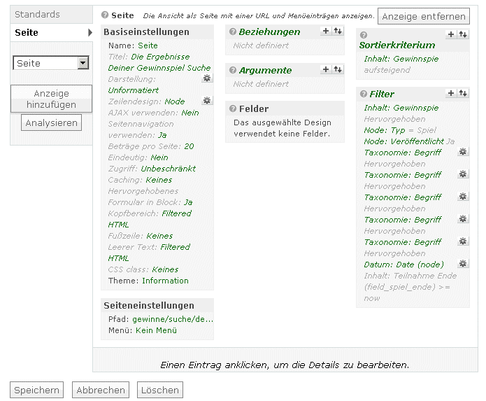 2. ich habe eine seite in views mit der pfadangabe und habe die felder definiert