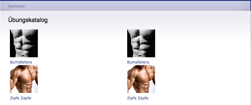Wenn man dort auf den Menüpunkt "Training" klickt, kommt diese Artikelübersicht mit Bildern und Kategorienamen.