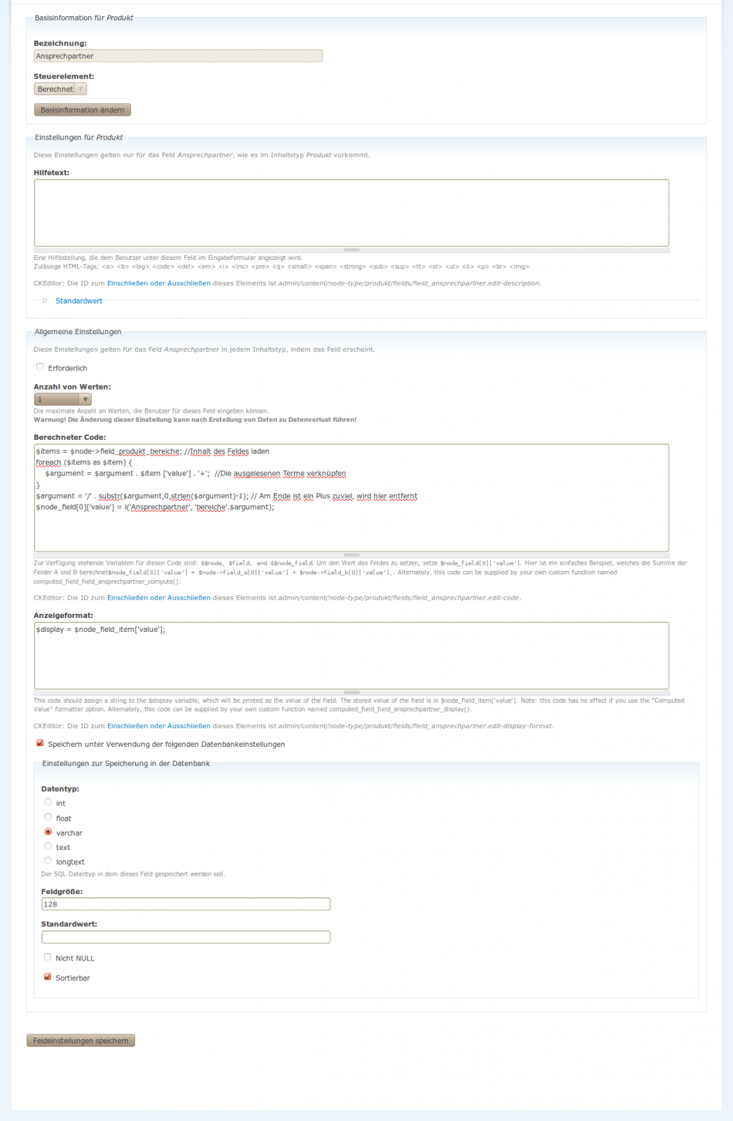 Ein weiteres Modul "computed field" war noch erforderlich. Denn Code Schnippsel von shopdogg habe ich in das Template meiner Produkt Node gesteckt.