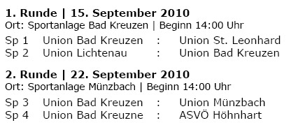 1. Runde | 18.05.2010 - 15:00 Uhr | 1. Landesliga | Ort: Bad Kreuzen