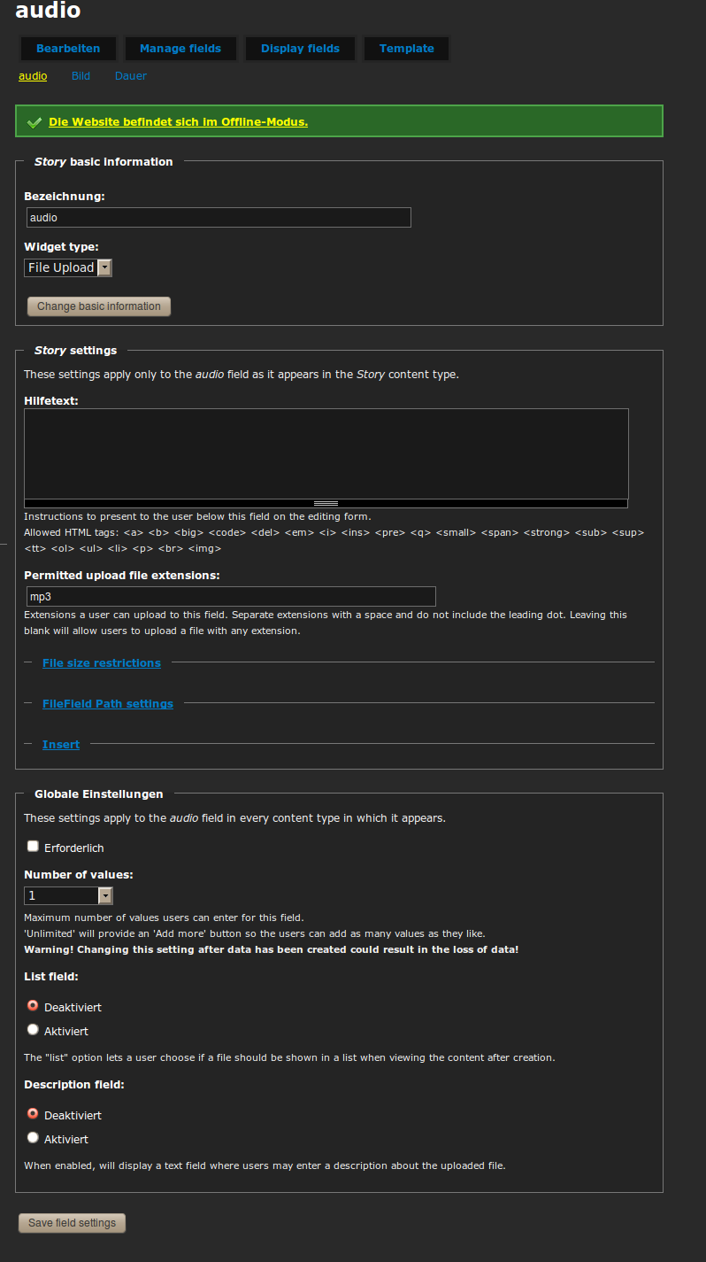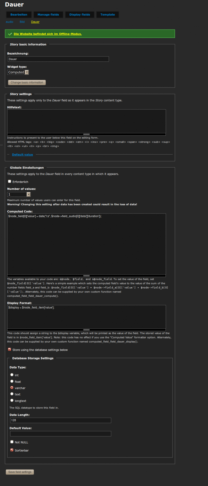 Kannst du mir 'n Screenshot von der kompletten Seite schicken (Also deine Field-Settings)