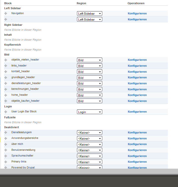 - den Einstellungen der Blöcke um die es geht. Dafür musst du neben dem jeweiligen Block "configure" oder eben die dt. Entsprechung anklicken.