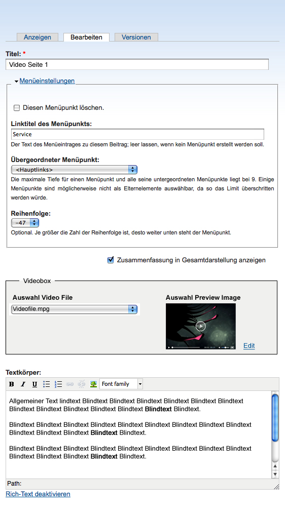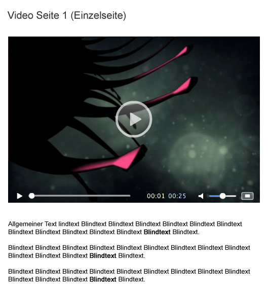 Es soll eine Seitenvorlage geben, in der ein Video und Text vorkommen. Der Player startet nicht sofort, sondern zeigt ein Vorschaubild, dass man manuell einpflegen muss.