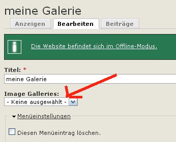 Noch eine weitere Frage: wenn ich den Bild-Inhalt bearbeite habe ich theoretisch die Möglichkeit eine "Image Gallerie" auszusuchen. Leider habe ich im entsprechenen Feld aber keine Wahlmöglichkeit. Wie stelle ich dort eine ein? Siehe dazu den Screenshot.