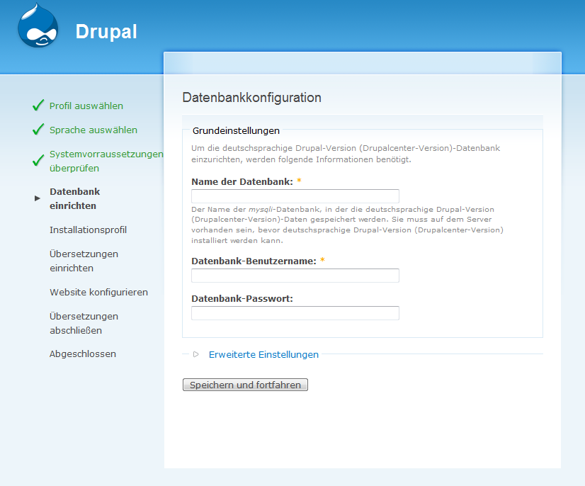 Damit werden Dir die Drupal-Tabellen in der Datenbank erst erstellt und die settings.php korrekt erstellt.