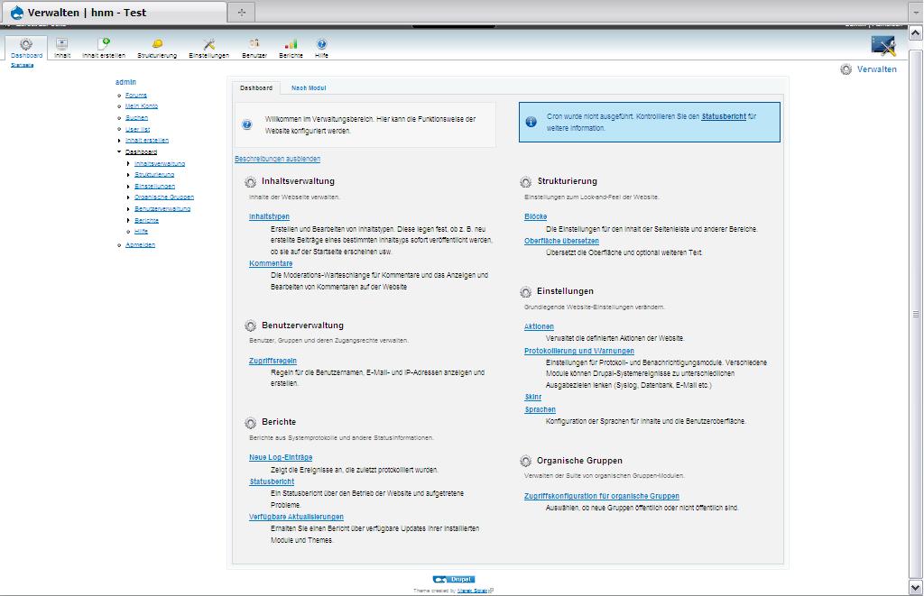 Nach dem Upload waren die Module von Views auch erstmal zu sehen, überall den Haken gesetzt und dann kam erstmal Meckermeldung wegen Memory - diesen von 24MB auf 32MB hochgesetzt und die Installation funktionierte. Wollte dann in die Ansicht Module wechseln und nun ging es nicht mehr. Mein Dashboard sieht nun wie im Anhang aus - dem geübten Drupal-User wird auffallen - da fehlt einiges.