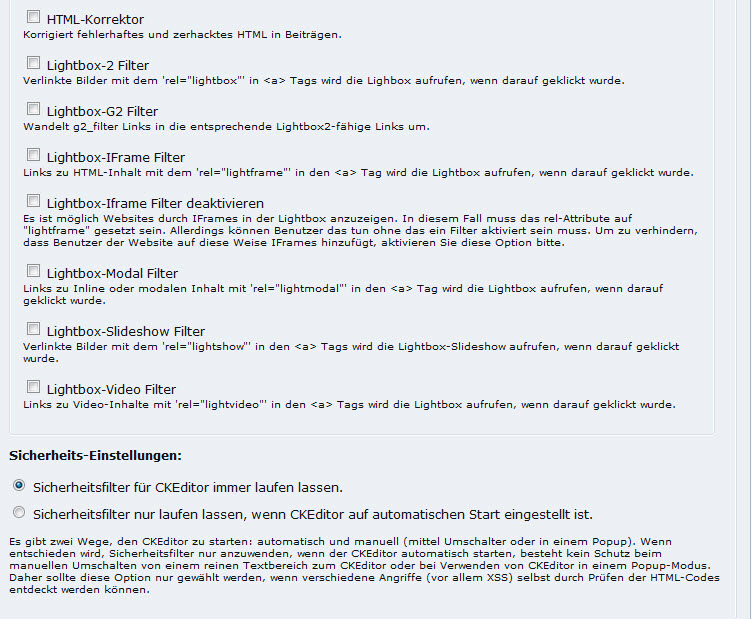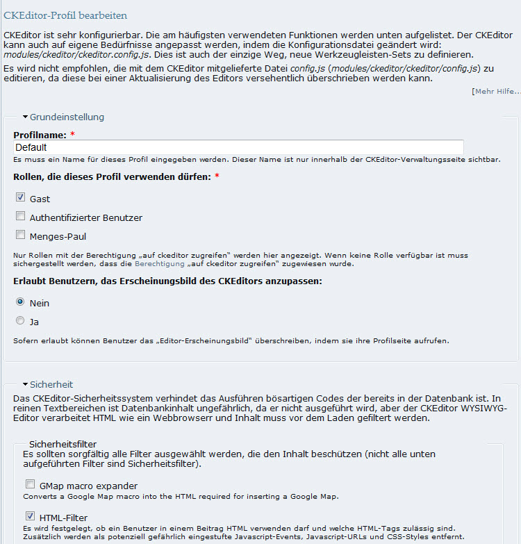 Hatte meine Seiten komplett erstellt mit cke-editor, habe dann an den Einstellungen rumgesucht, was ich verändern muss, wenn bestimmte Benutzer nicht alle Rechte haben sollen, was auch die Textdarstellung angeht.
