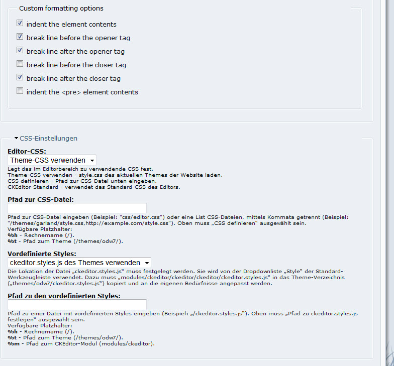 hatte in den ckeditor Einstellungen etwas verändert aber egal was ich wieder einstelle, es komt nicht mehr die richtige Darstellung. Übersehe ich da irgendwo etwas.