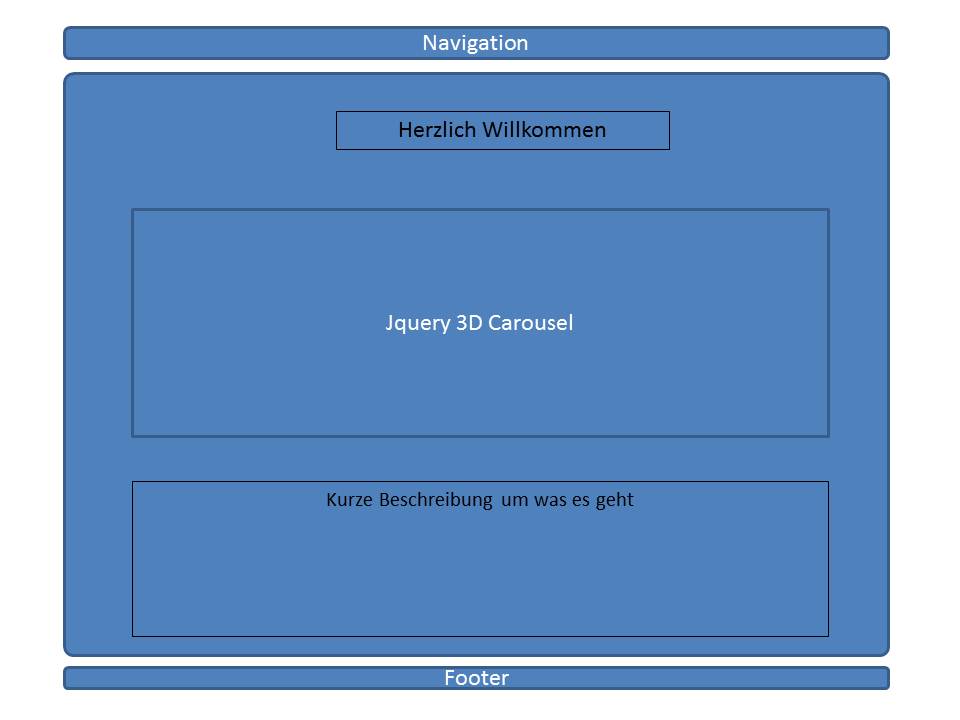 Diesen Contentbereich möchte ich gerne in zwei Bereiche teilen. Ich möchte ein Jquery 3D Carousel einbinden und darunter einen Text setzen. (In html hätte ich einfach zwei divs gesetzt :-D)