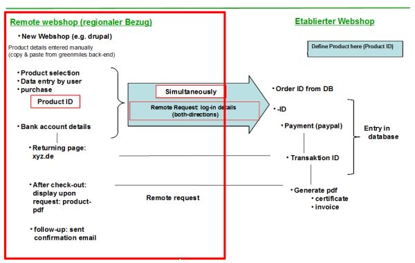 Die neue Website stellt einen zusätzlichen Internetdienst einer etablierten Firma dar. Auf ihr sollen Benutzer Produkte kaufen können, die im Webshop der Firma bereits vorhanden sind (remote webshop zur regionalen Kundenansprache). Die neue Site soll wesentliche Elemente der Firma (u.a. Produkte, Bezahlsystem, Rechungssystem) des etablierten Systems über eine Schnittstelle/ remote requests nutzen.. Auf der neuen Seite sollen registrierte Benutzer sich selbst darstellen können.
