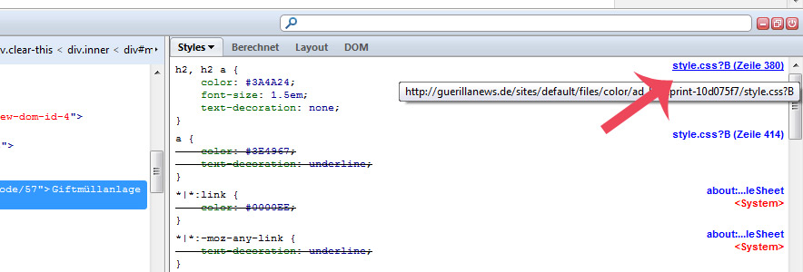 Vielleicht hilft Dir ein Blick auf diese Anleitung: http://www.thoor.de/drupal/css-kniffe/css-design-einfach-mit-firefox-und...