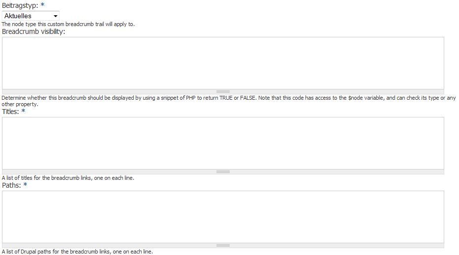 Wenn ich für meinen Inhaltstyp "Seite" einen neuen Breadcrumb erstelle und bei bei