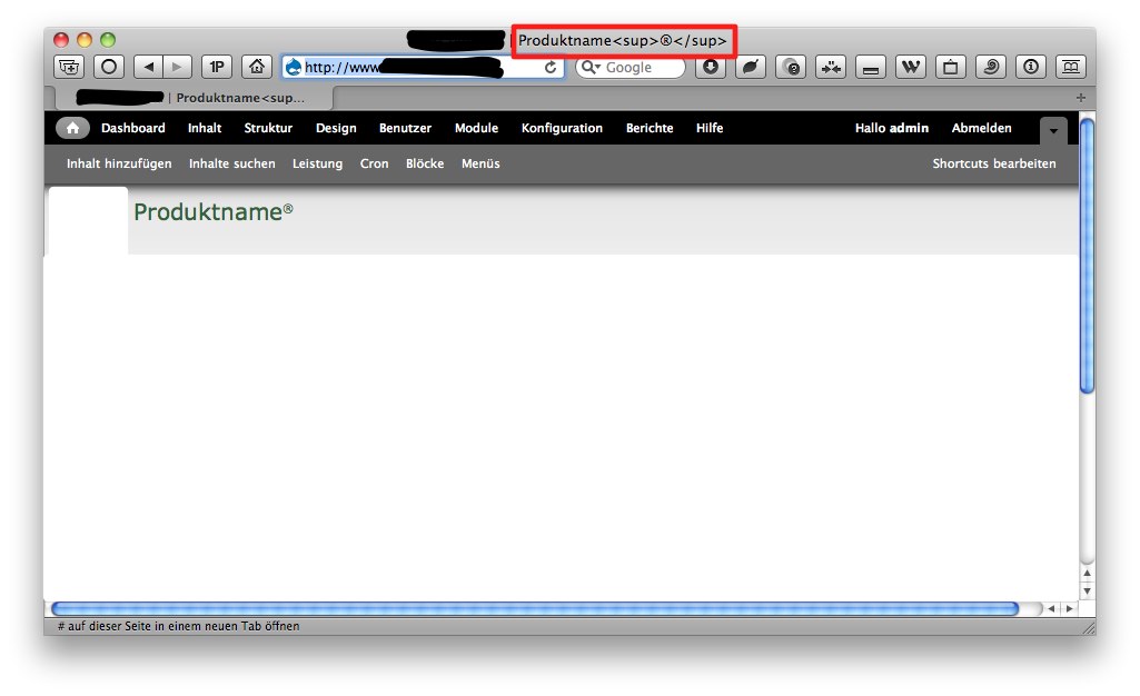 Ich erwarte ja garnicht, dass es im Browsertitel genauso dargstellt wird. Dort kann das ® ruhig genau so gross sein wie die anderen Buchstaben. ICh will nur nicht die HTML-Tags sehen.