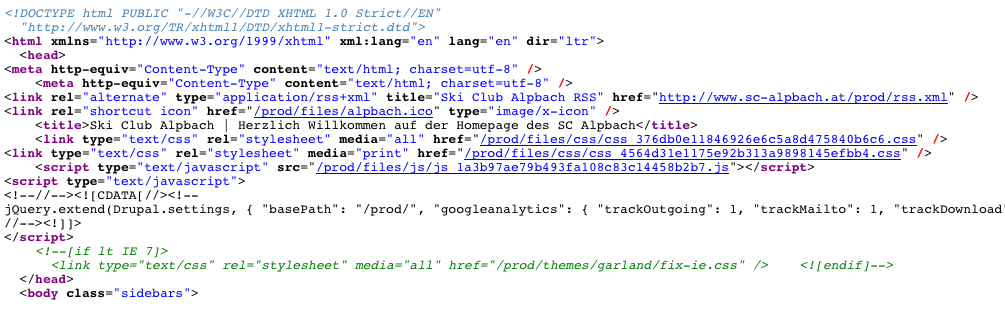 Ich füge mal das an was mir im Mozilla unter plain Text angezeigt wird wenn ich auf die Startseite gehe.