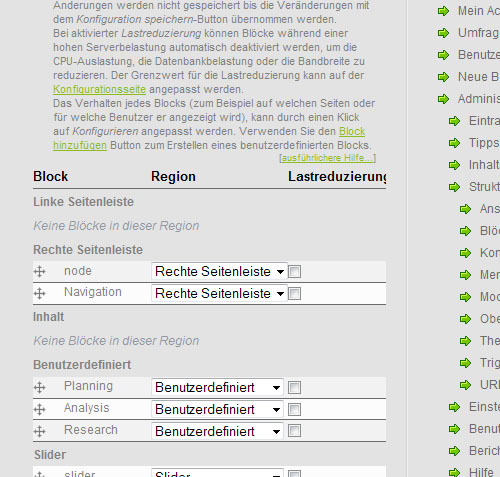 wo kann ich denn in drupal den inhaltsbereich vergrößern? Kann man auch die linke Seitenleiste kpl. in der Blockverwaltung ausschalten? Es steht nichts drin aber es macht die mittlere Seite sehr schmal.