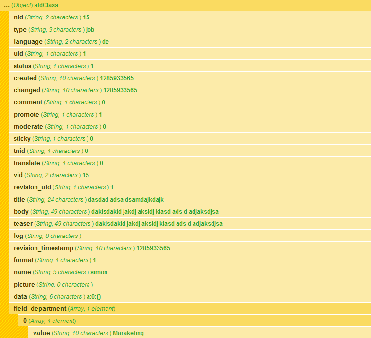 // dsm($my_node); // Ausgabe des Objekts mithilfe des devel Moduls