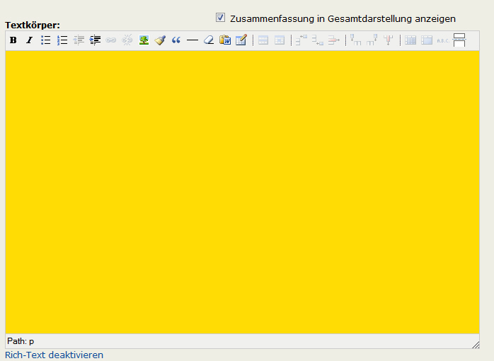 z.B. kann man mit dem WYSIWYG-Modul nicht einstellen ob der Editor auch in der Summary erscheinen soll bzw. werden keine HTML-Tags (p-Tag) im Code angezeigt.