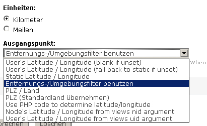 Dein Tipp war wieder goldwert. Ich hatte die Option übersehen, den Filter als Ausgangsplz nehmen zu können (http://www.drupalcenter.de/files/distance2.jpg). Jetzt klappt es wunderbar :)