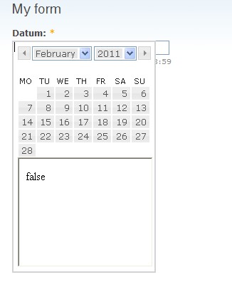 Das Modul [do:date Date] bietet in Verbindung mit [do:jquery_ui jQuery UI] schon ein Datumsfeld mit Datepicker. Kein Grund, das selbst zu bauen :).
