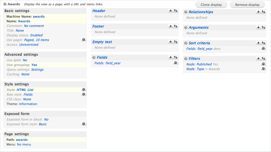 Awards hat das field year nach dem es auch sortiert und gruppiert wird (s. settings im Anhang)