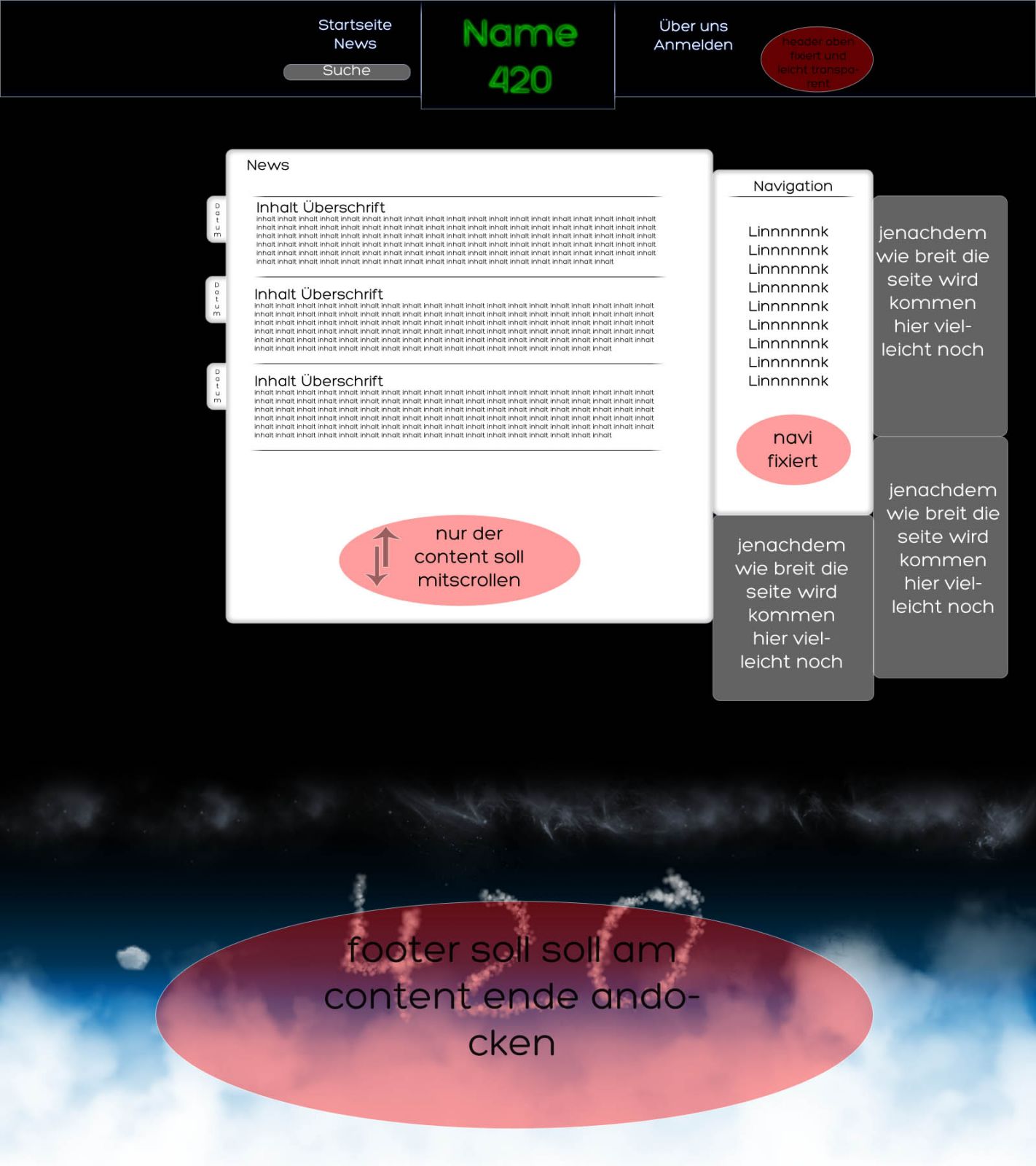 Ich habe mal ein grobes layout erstellt mit kommentaren, hoffe es zeigt euch wie ich es mir ungefähr vorstelle.