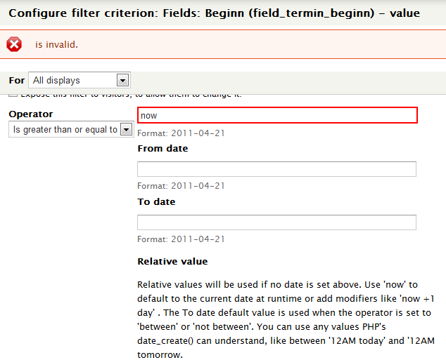 D7 View Filter >= now liefert Fehler