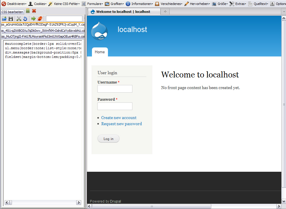 Es ist auch egal, ob ich Firefox oder GoogleChrome mit der Web Developer-Erweiterung benutze.