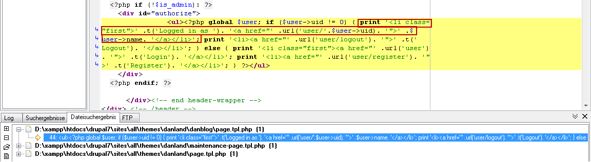 Im Anhang findest du Ausschnitt aus einer erfolgreichen Suche in PSPad.