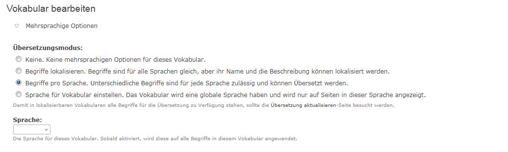 Welche Auswahl müsste ich denn treffen, damit die Begriffe nur übersetzt werden müssten?