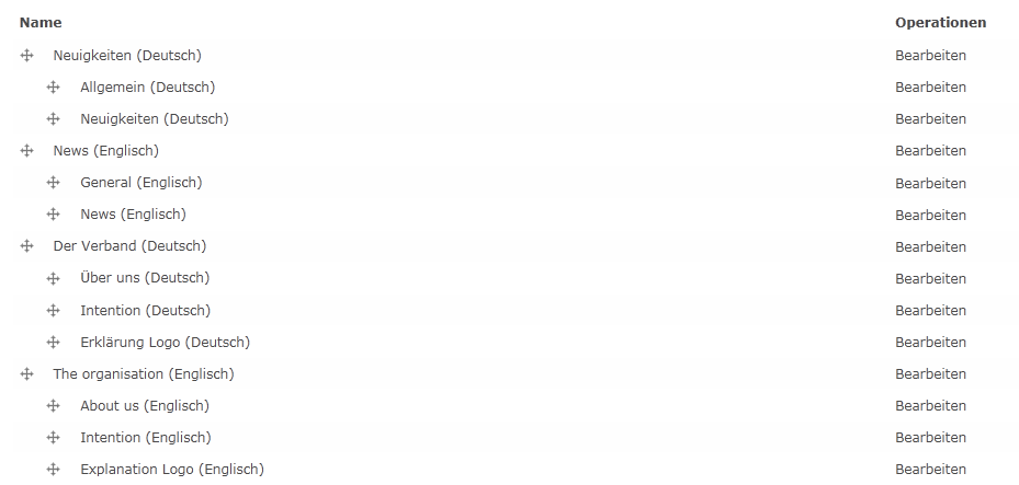 Probleme bekomme ich nämlich mit der Einzelauswahl dann, wenn ich mehrsprachige Menüs habe, wo es den Überpunkt "Neuigkeiten" und "News" gibt. Da ich aber nur einen auswählen kann, stellt mir die Spracheinstellung den englischen Begriff gar nicht zur Auswahl - der Inhalt landet im falschen Bereich.